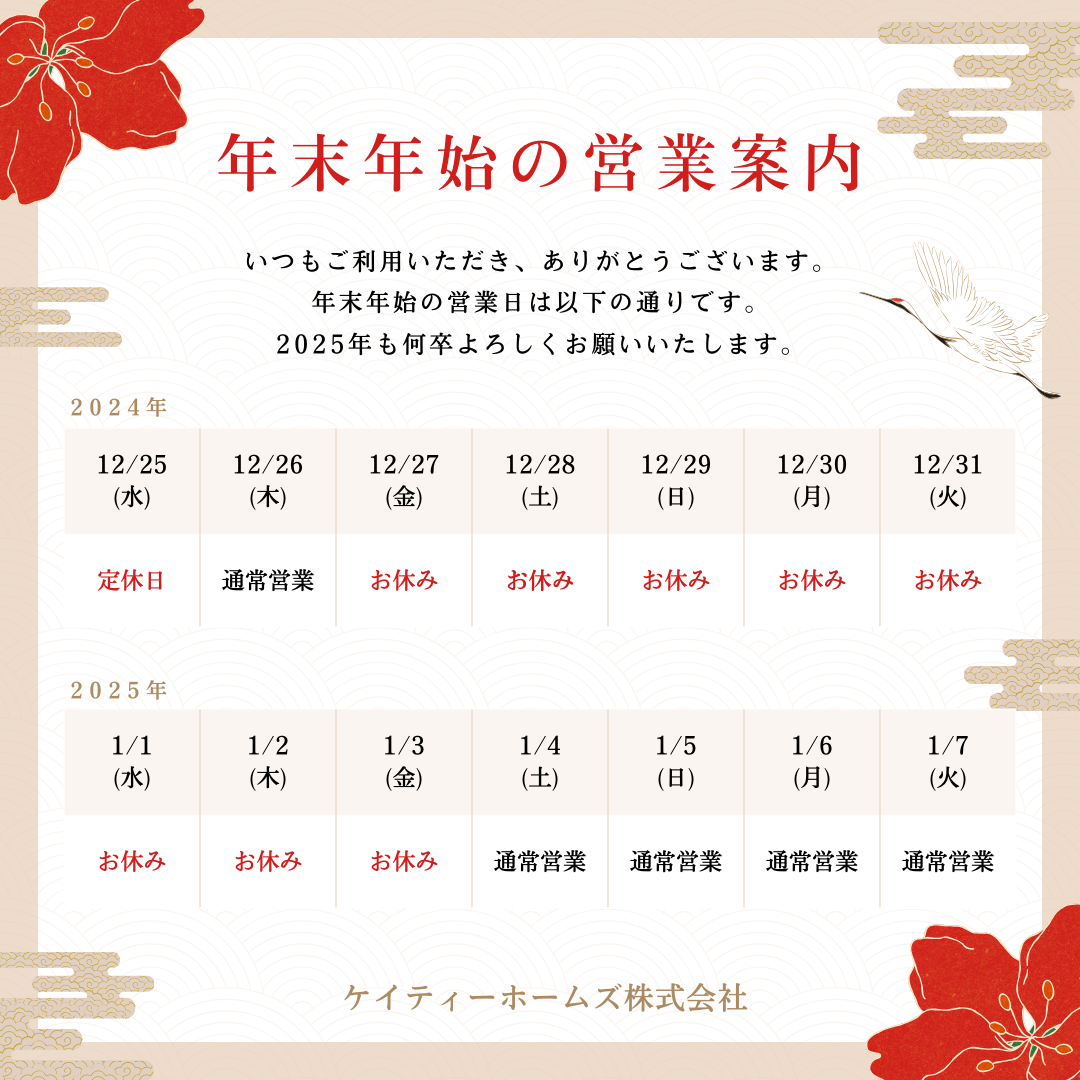 【年末年始 営業日のご案内】